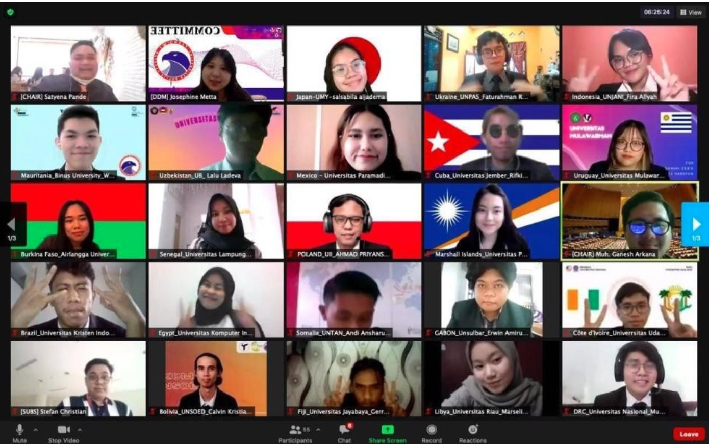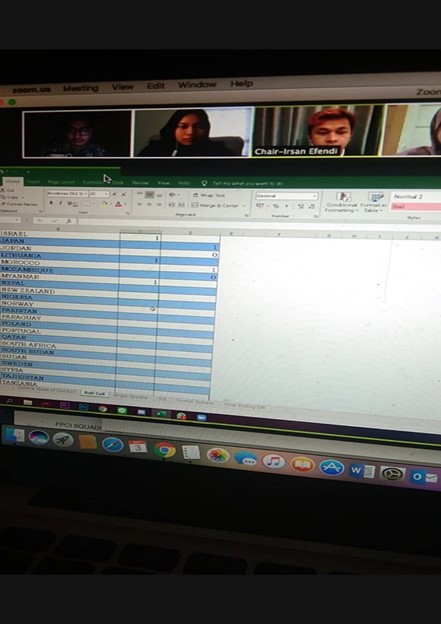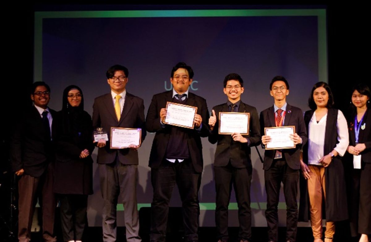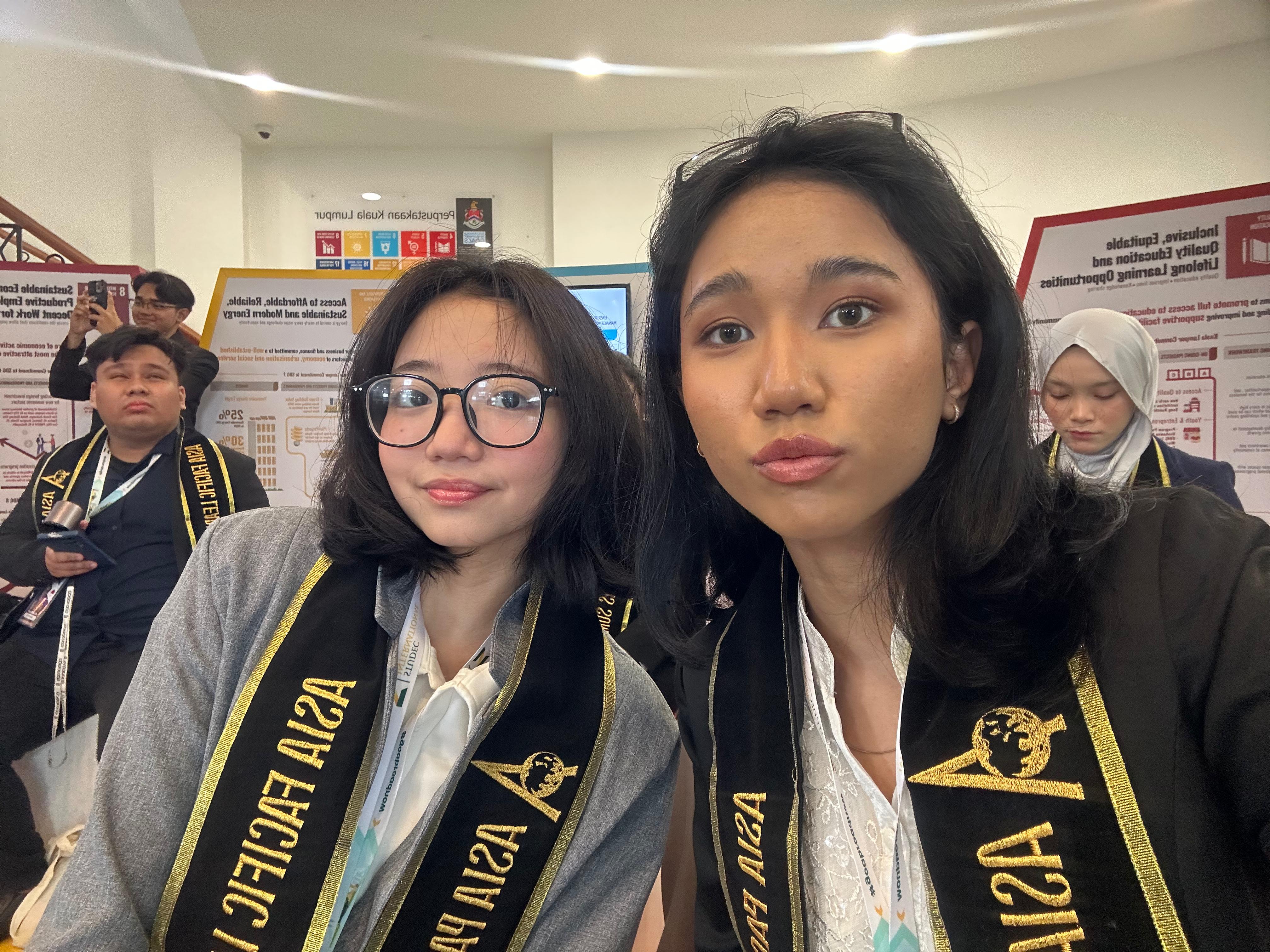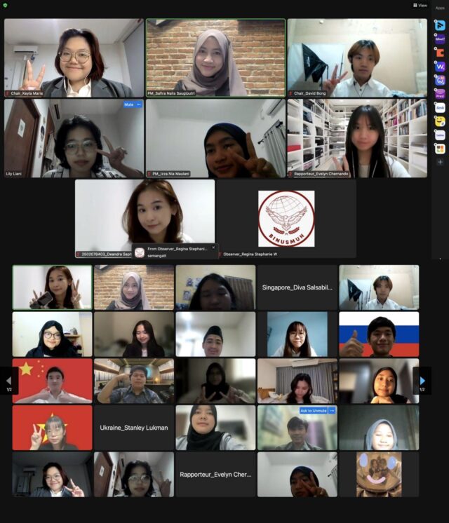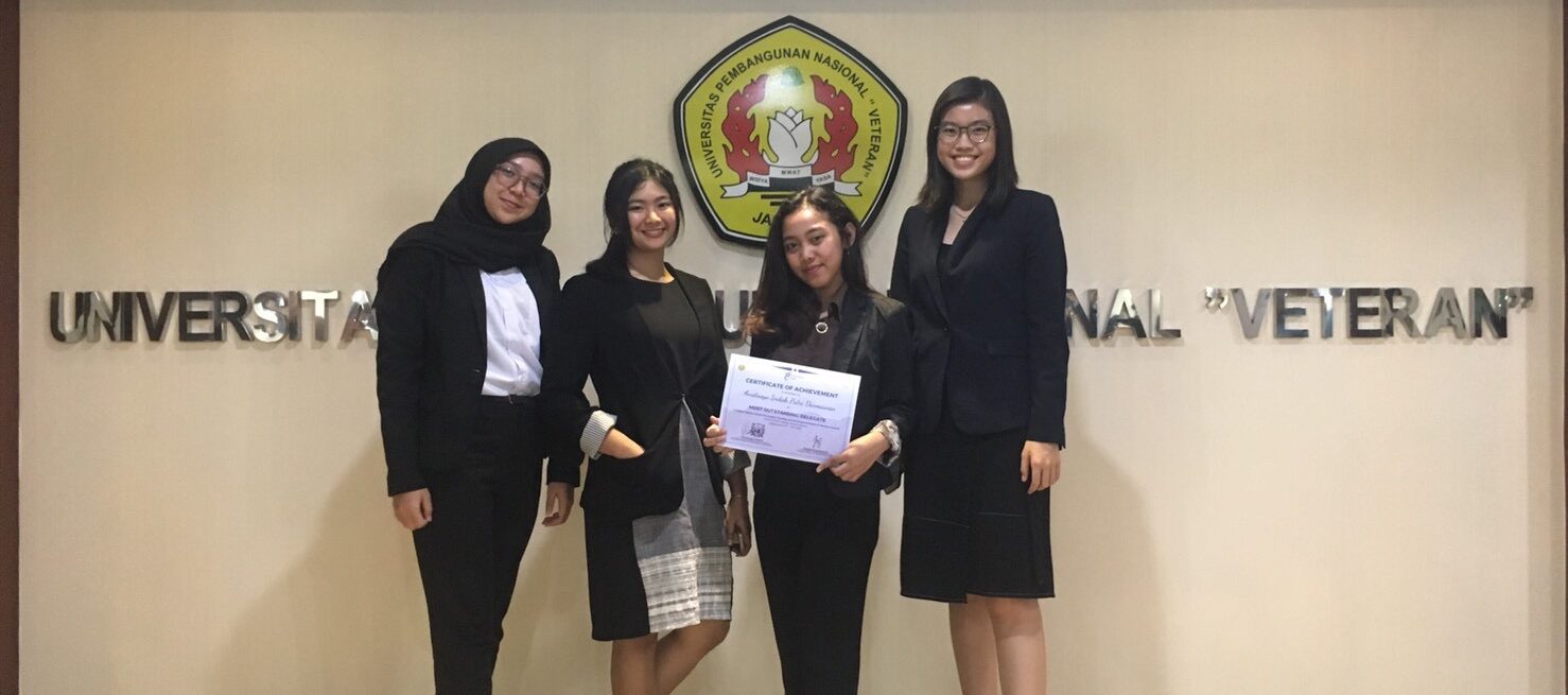 Thomas Noto Suoneto (Binusian HI 2018) dan Elica (Binusian HI 2019), kiri dan tengah, dalam The Thammasat University MUN 2017, Thailand