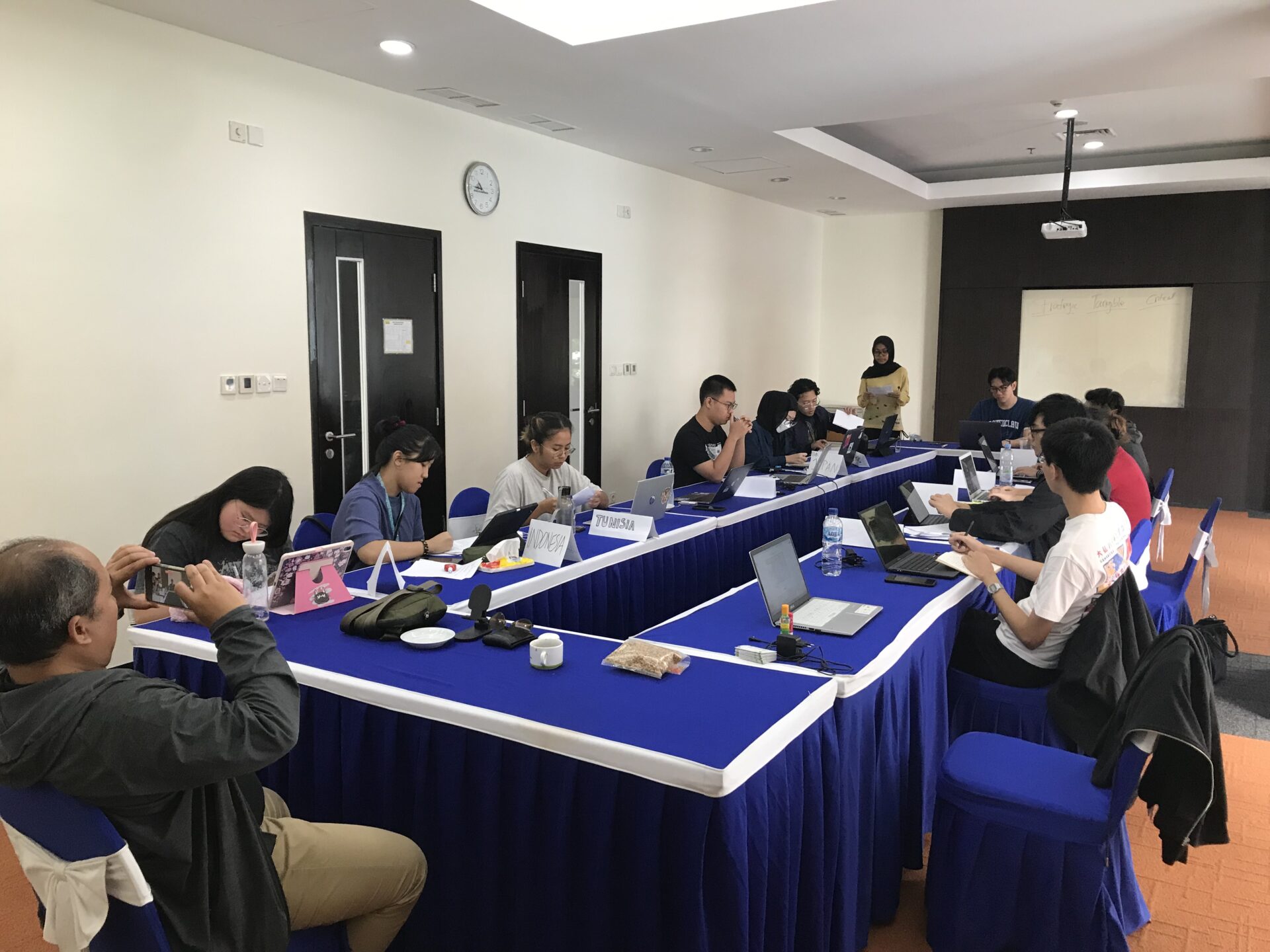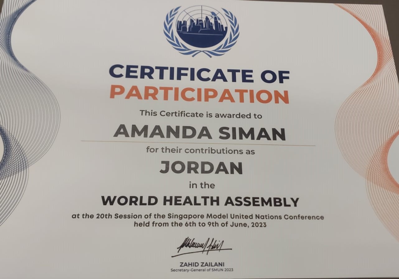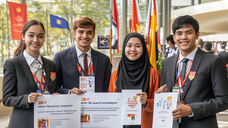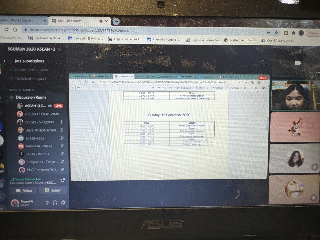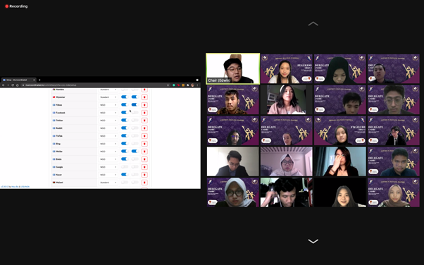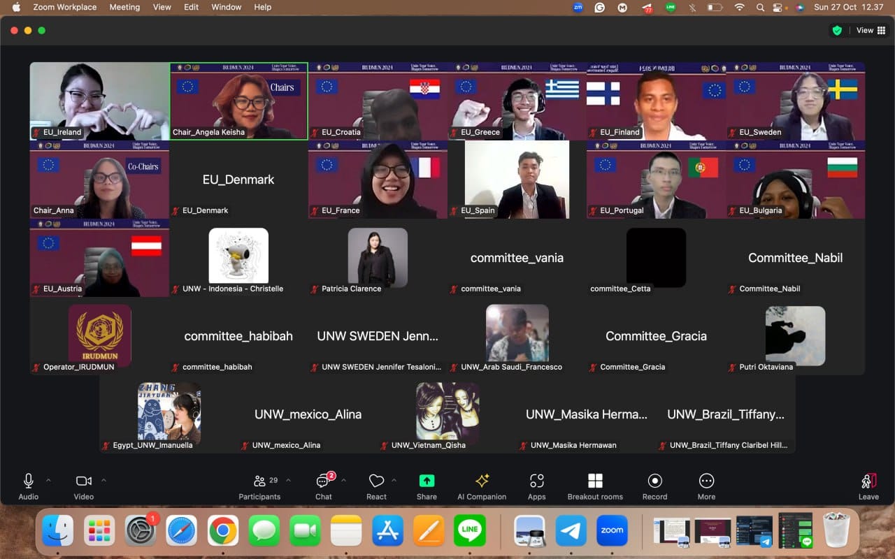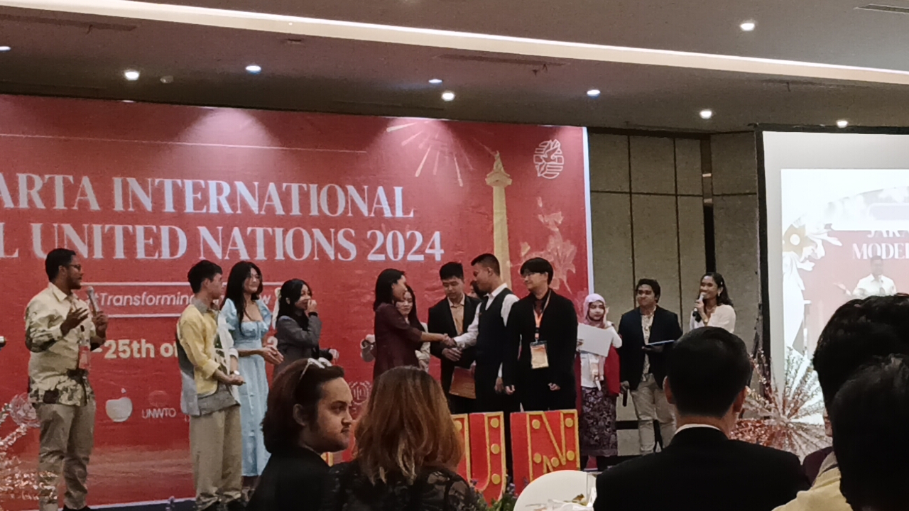 Thomas Noto Suoneto (Binusian HI 2018) dan Elica (Binusian HI 2019), kiri dan tengah, dalam The Thammasat University MUN 2017, Thailand