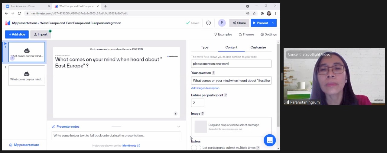 Prof. Marijke Breuning (University of North Texas, US) selaku discussant pada panel 2 ICOBIRD 2021