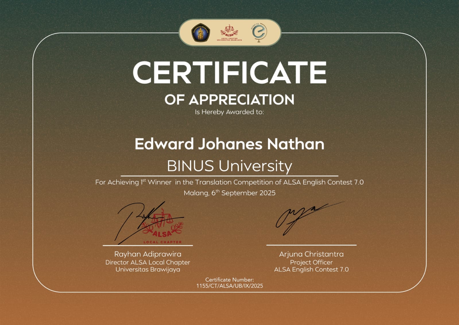 Alvin Ernesto, Binusian HI 2017