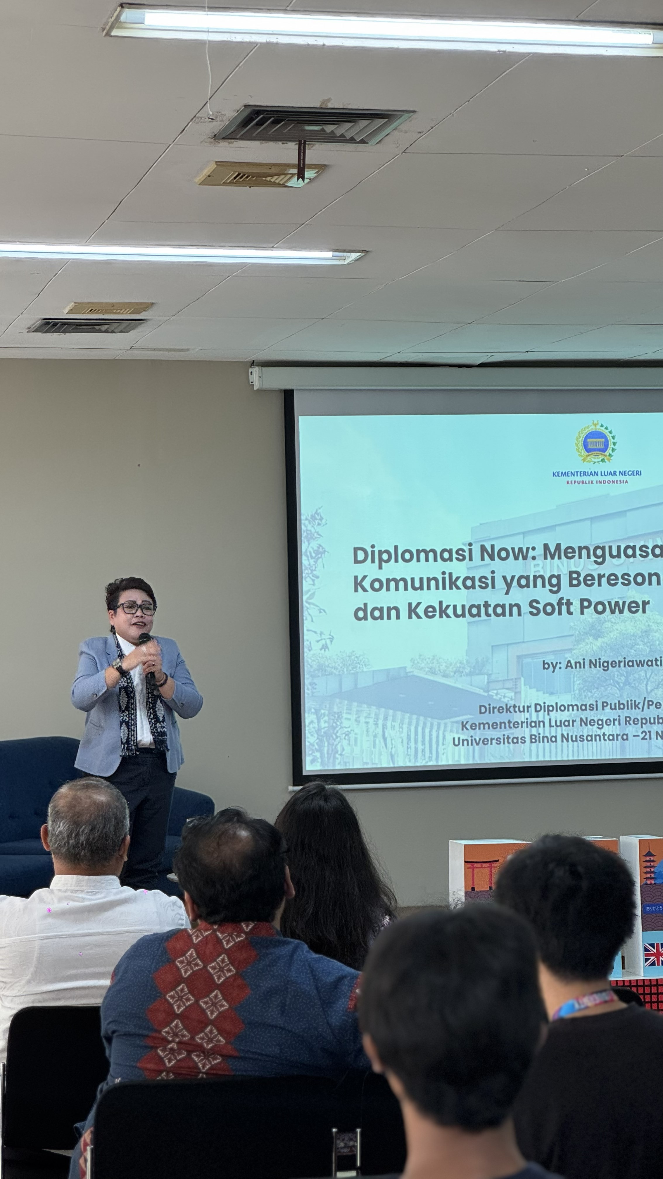 Ketua Jurusan Program HI Binus memberikan arahan kepada mahasiswa