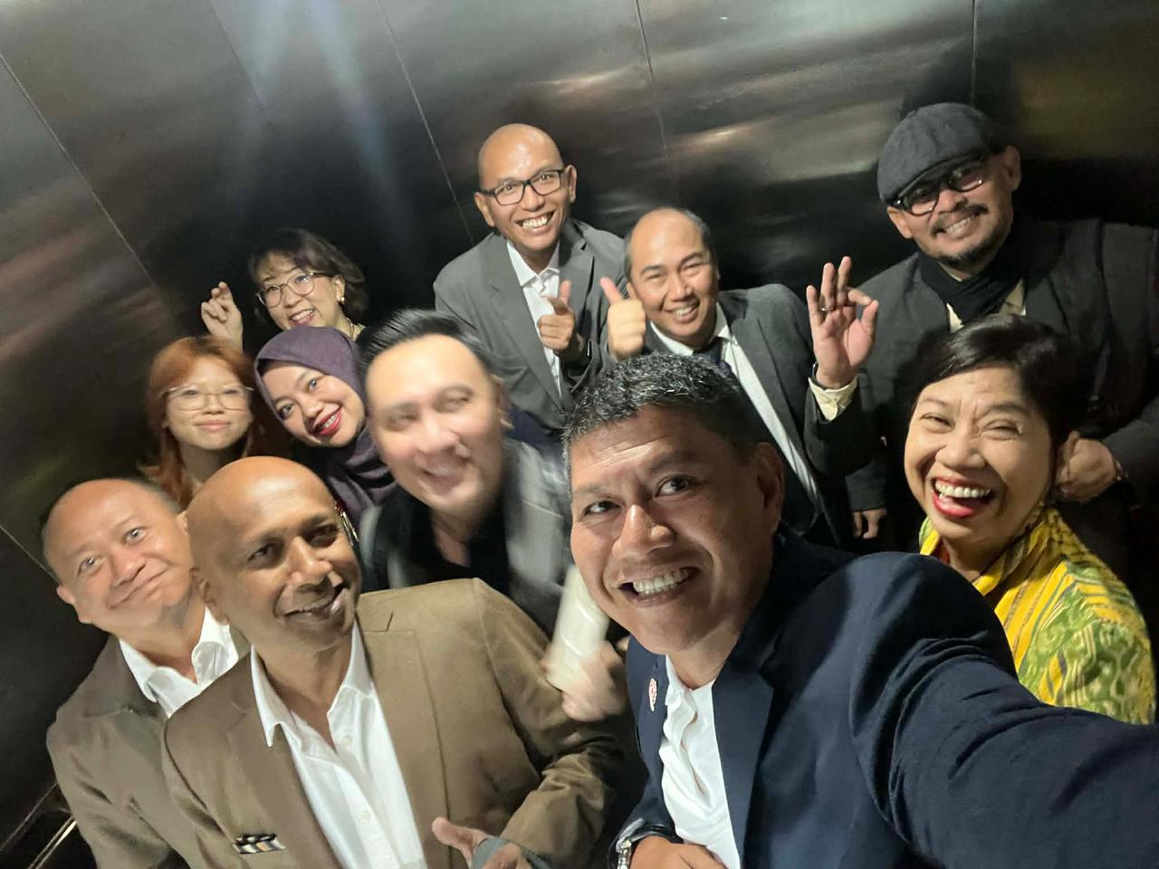 Dosen, perwakilan mahasiswa, perwakilan alumni, dan staf Jurusan HI BINUS berfoto setelah visitasi HEEACT hari-1