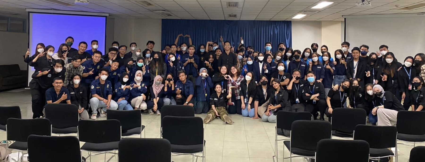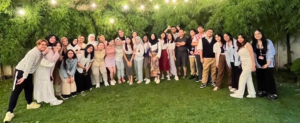 Peserta Welcoming Party HI 2023 berfoto bersama panitia dan dosen