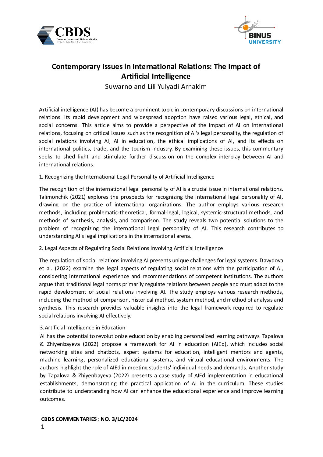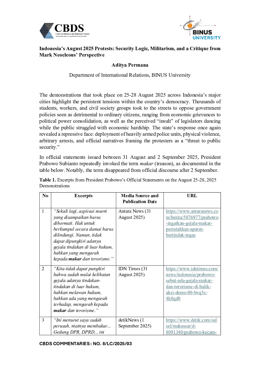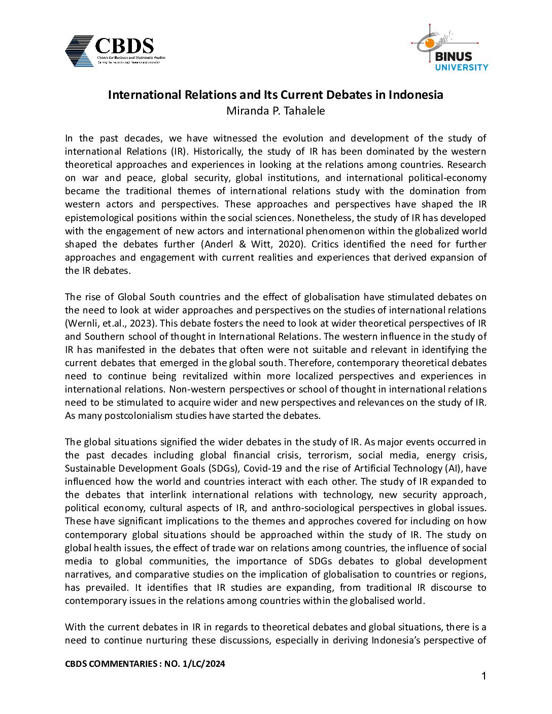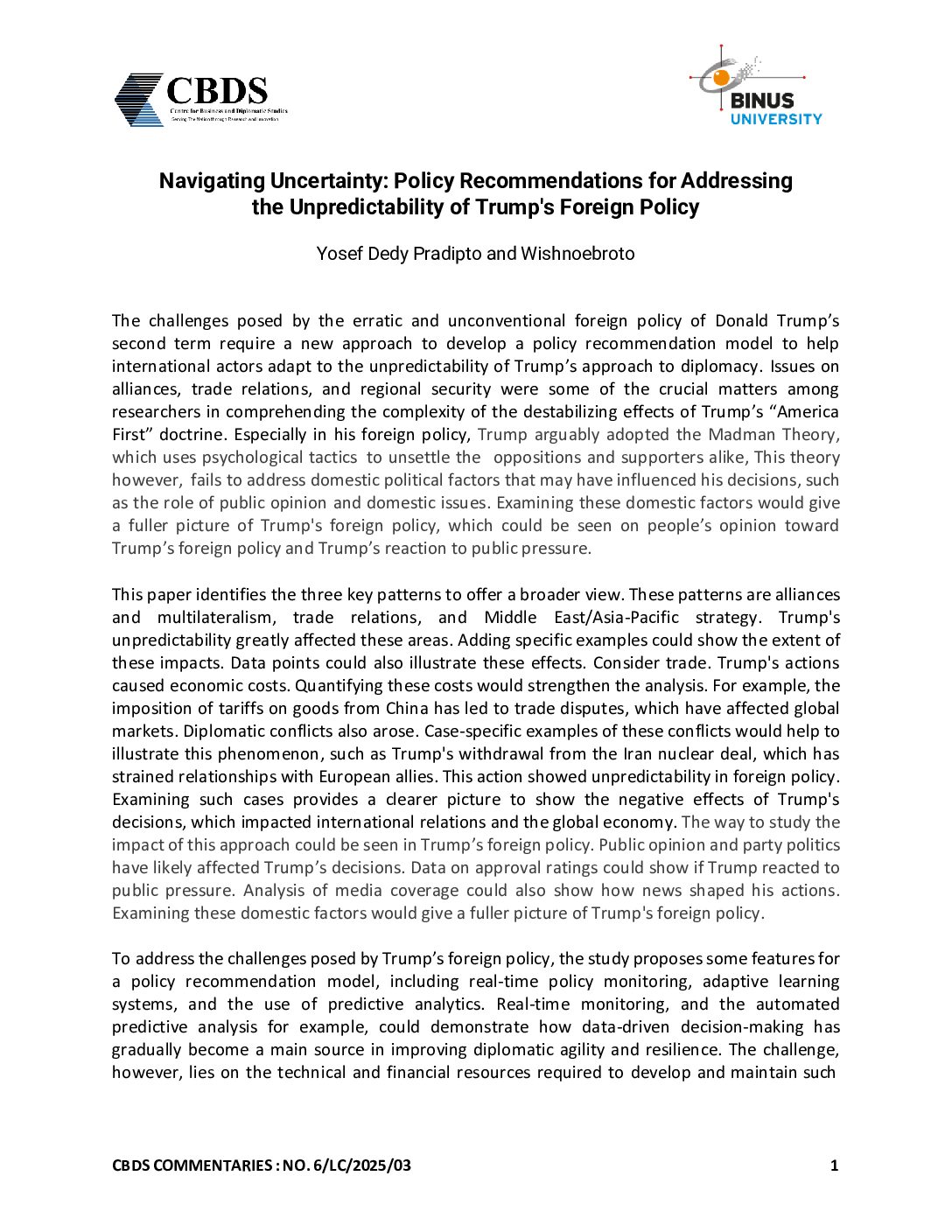 Below right: the Head of the Department of International Relations Binus University, Rangga Aditya, S.Sos., M.A., Ph.D.
