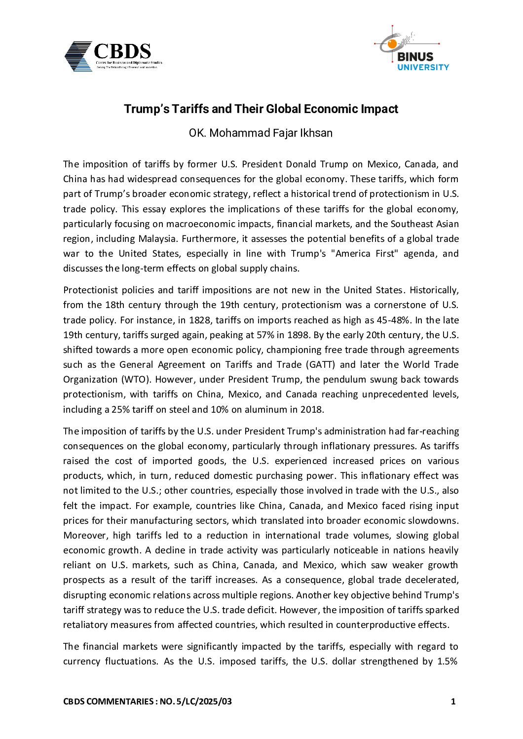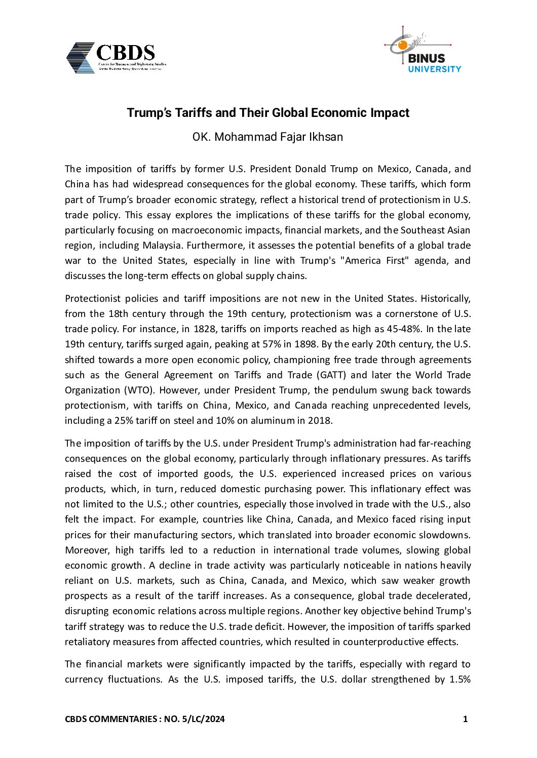 Tirta Mursitama PhD, BINUS Trade Specialist Indonesia