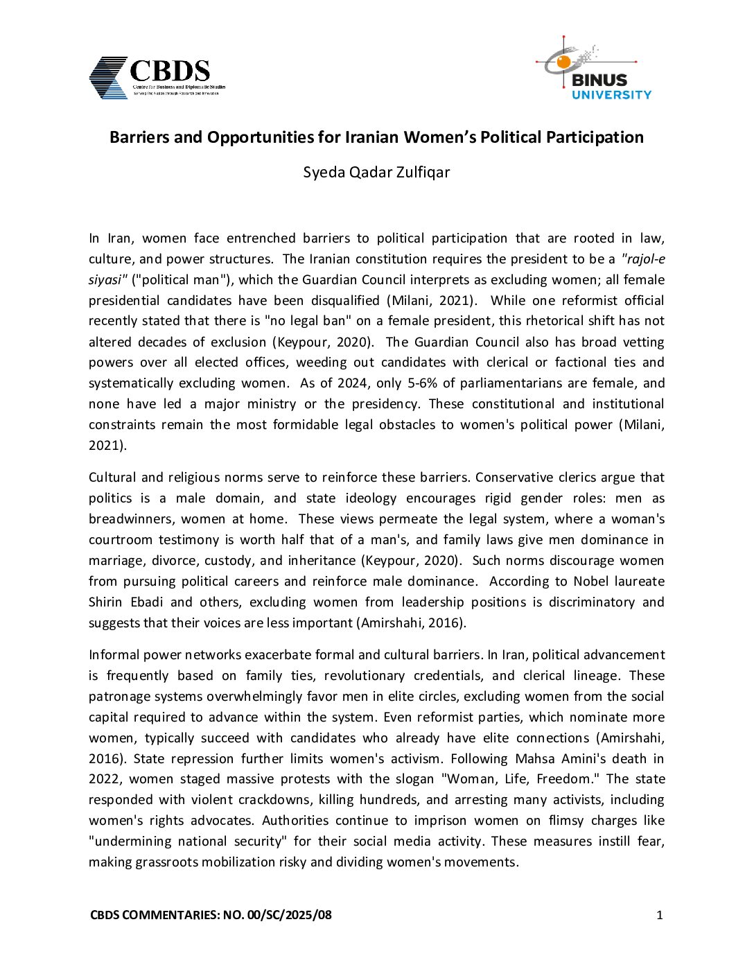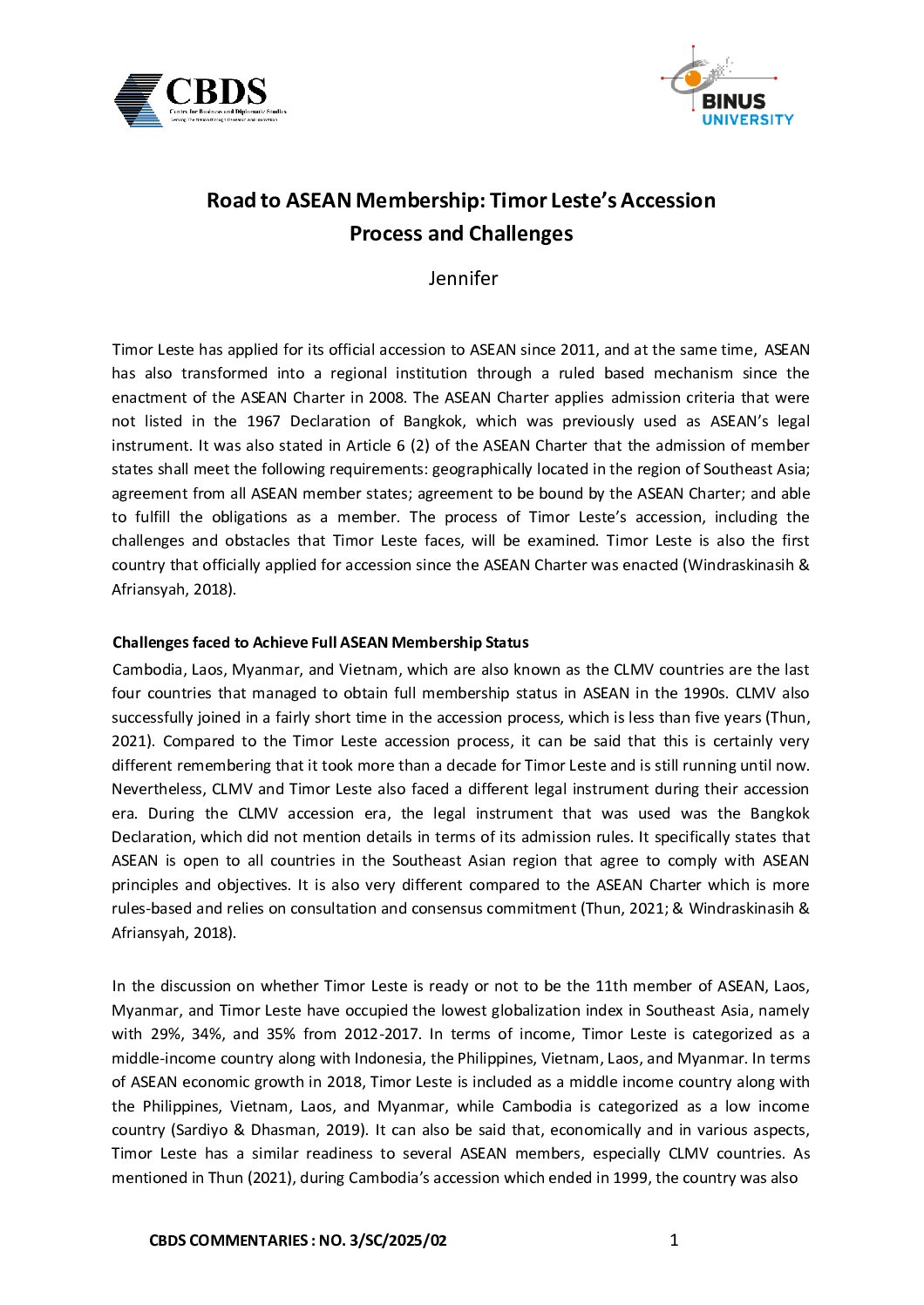 • CBDS Commentaries