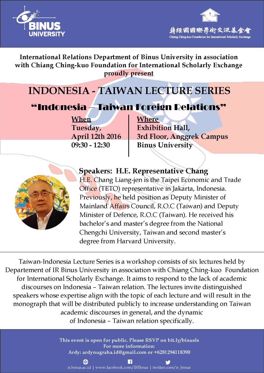 Invitation to The 1st Indonesia–Taiwan Lecture Series Indonesia–Taiwan Lecture Series International Relation Lecture Series Share It :