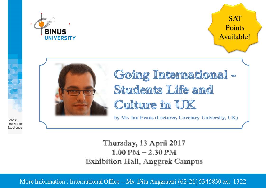 [Public Lecture-Coventry University, UK] Going International – Students Life and Culture in UK