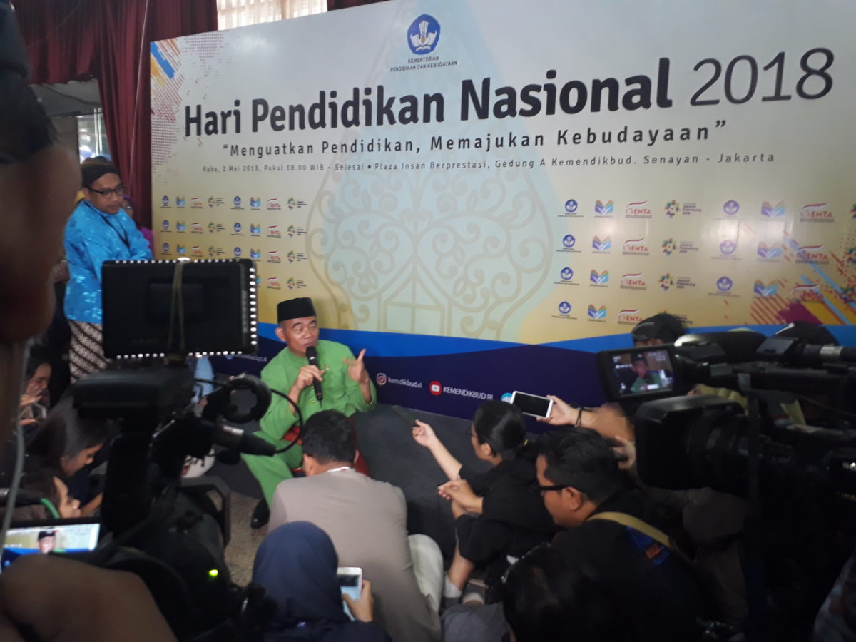 (Foto diambil pada tanggal 2 Mei saat wawancara Prof. Dr. Muhajir Effendy, M.A.P Menteri Pendidikan dan Kebudayaan Republik Indonesia setelah upacara hari pendidikan di Gedung A Kementerian Pendidikan dan Kebudayaan)
