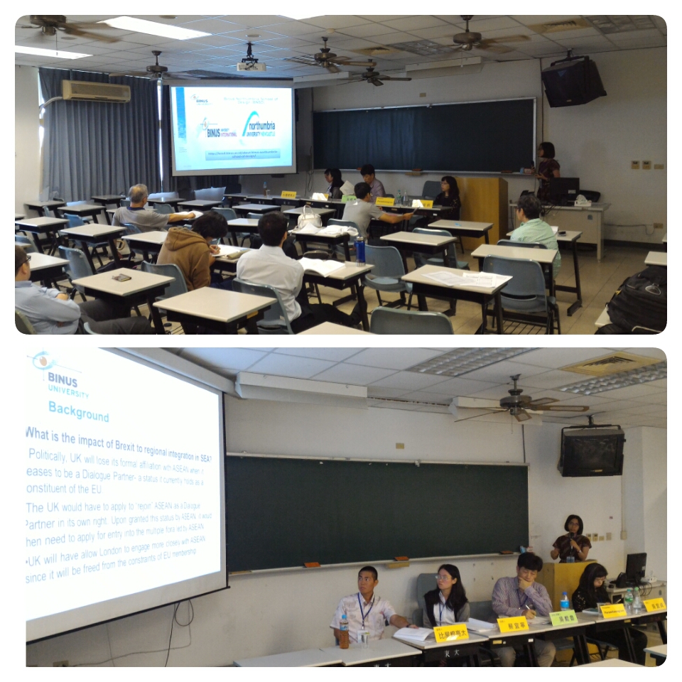 Paramitaningrum sendiri menyampaikan presentasi makalahnya yang berjudul, Brexit as an Opportunity to Enhance UK – Indonesia Cooperation in Higher Education: Case of Binus Northumbria Schoolof Design (BNSD). Fenomena Brexit (British Exit – Keluarnya Inggris dari keanggotaan Uni Eropa) bisa menjadi momentum bagi Inggris untuk mencari peluang atau memperkuat kerjasama internasional dengan negara-negara Asia Tenggara, termasuk Indonesia, di berbagai bidang. Disini BNSD bisa dianggap model kerjasama Pendidikan internasional, karena mengikuti trend kerjasama international di sektor pendidikan tinggi dan mengakomodasi minat generasi muda untuk mengikuti pendidikan tinggi berstandar internasional dan kepentingan ekonomi.