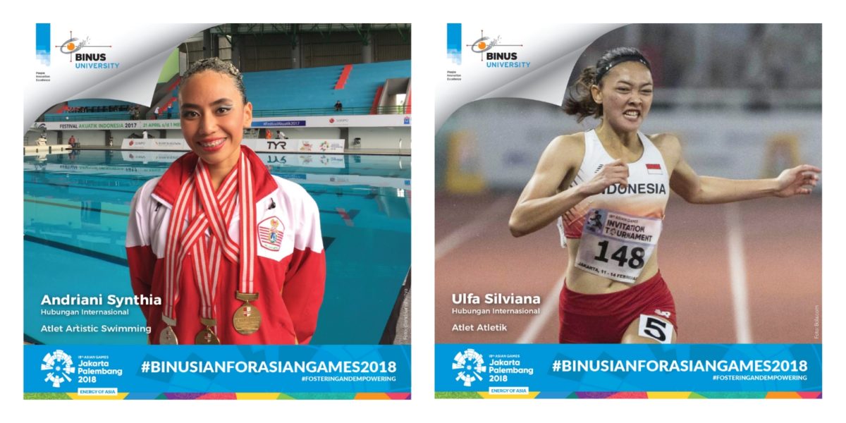 Dua mahasiswi HI Binus, Andriani Synthia Ardhana dan Ulfa Silviana, dengan bangga turut berjuang mewakili Indonesia dalam ASIAN GAMES ke-18 2018. Andriani merupakan atlet dalam cabang olahraga artistic swimming, sementara Ulfa merupakan atlet dalam cabang olahraga atletik. Selamat bertanding! #BINUSIANFORASIANGAMES2018