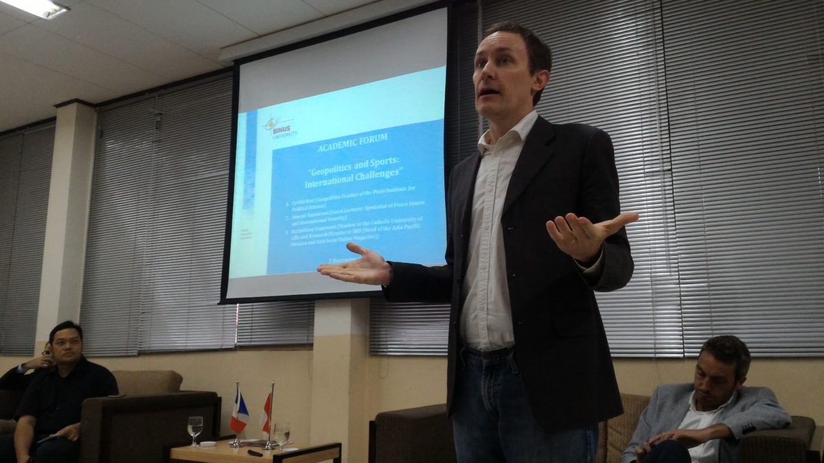 Pada tanggal 3 Desember 2018, diselenggarakan Academic Forum, bertema Geopolitics and Sports: International Challenges, di kampus Binus University, Syahdan, Jakarta. Dihadiri oleh para mahasiswa Hubungan Internasional, dari program regular dan Global Class. Acara ini merupakan kerjasama antara Warung Perancis Binus University, Jakarta, Binus Global, dan Institut Francais Indonesia (IFI).
