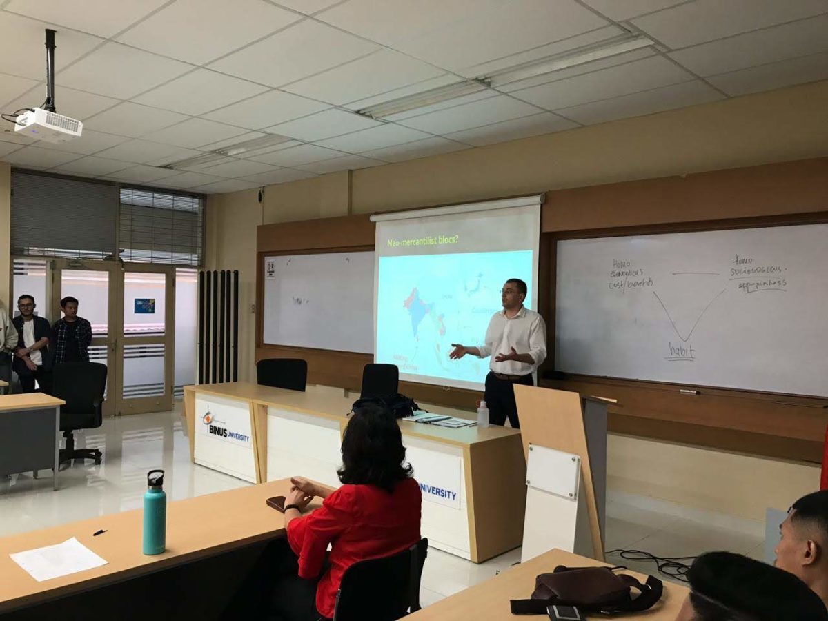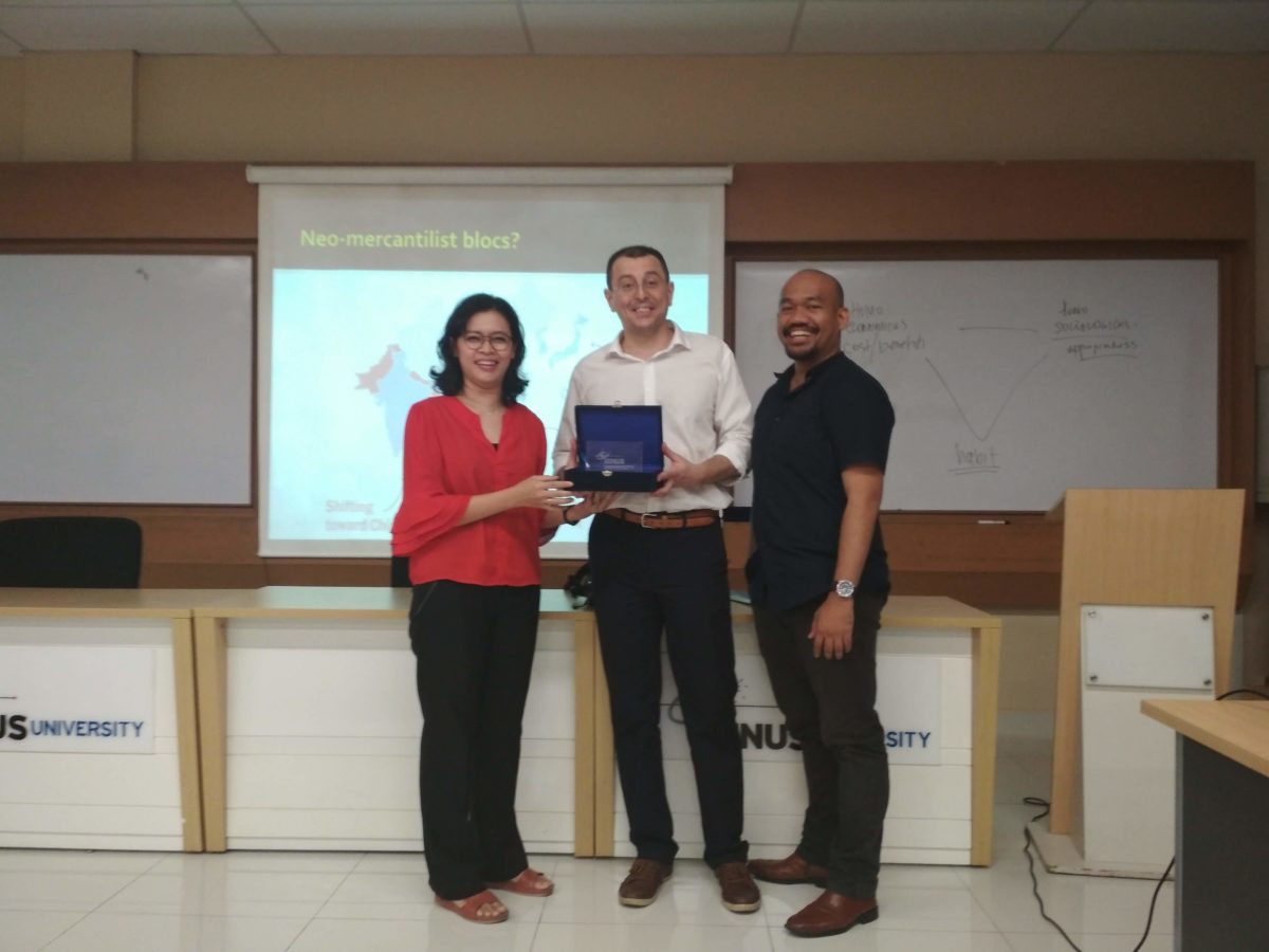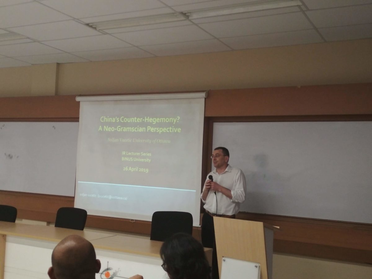 Jakarta – Pada tanggal 26 April 2019, Departemen Hubungan Internasional kembali mengadakan IR Lecture Series (IRLS). Ini merupakan acara IR Lecture Series yang ke-53, yang kali ini mengangkat topik “China’s Counter Hegemony? A Neo-Gramsician Perspective” yang dibawakan oleh Assoc Prof. Srdjan Vucetic dari Ottawa University. Acara ini juga dihadiri oleh Prof. Tirta Nugraha Mursitama sebagai wakil rektor bidang riset dan transfer teknologi, bersama sejumlah dosen jurusan Hubungan Internasional Bina Nusantara, seperti Dinna Wisnu, M. Faisal karim, dan Lili Yulyadi.
