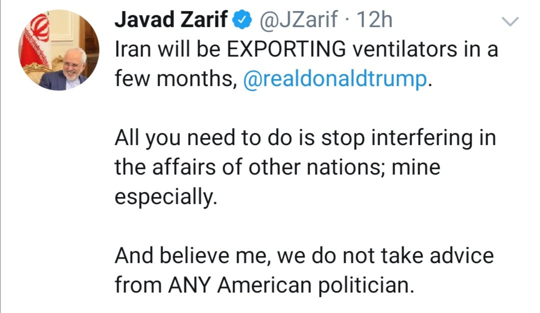 Just yesterday, the Iranian Foreign Minister, Javad Zarif made a clear statement on the Iran’s position towards US on this pandemic.
