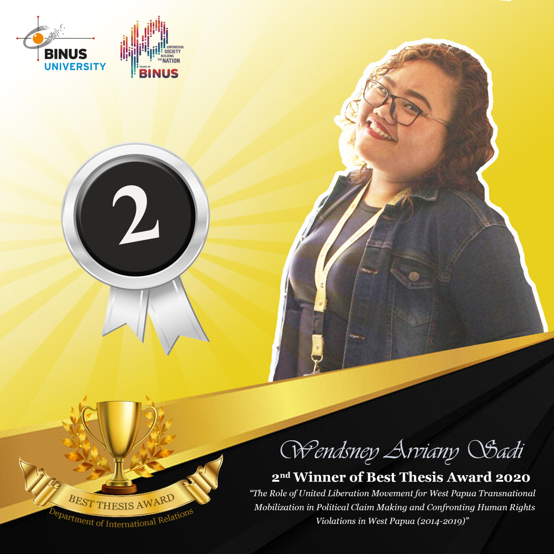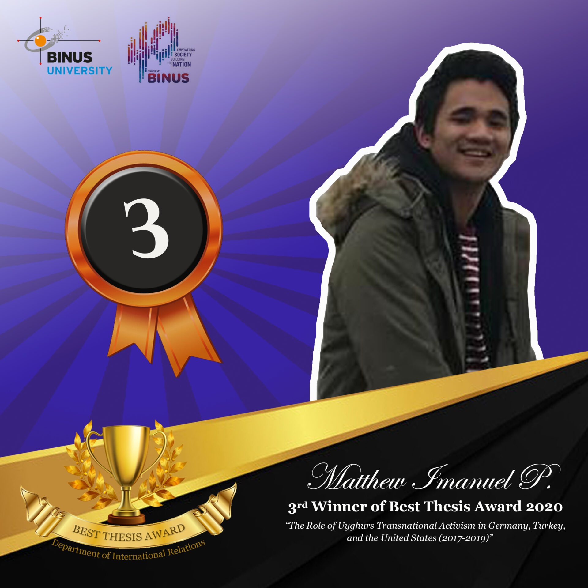 We selected some of the best ones among so many good papers written in this semester (Odd 2020/2021). The Winners are selected through a review process by our faculties which is based on some key academic writing criteria. Hopefully this award will inspire and motivate other students to do their best in writing a thesis. Congratulations, winners!