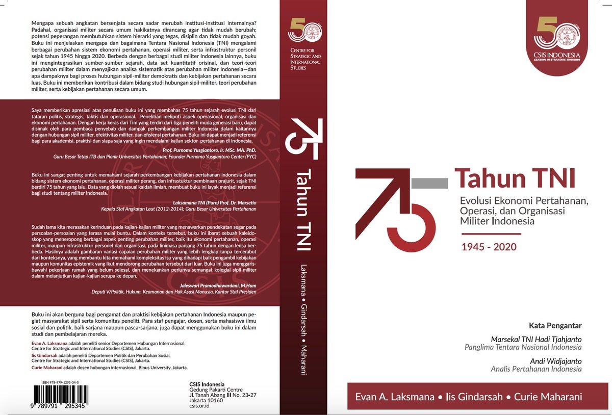 Sebagai hadiah ulang tahun ke-75 tahun Tentara Nasional Indonesia (TNI), pada Oktober 2020 tiga penulis dari Centre for Strategic and International Studies (CSIS) menerbitkan buku yang tepat berjudul 75 Tahun TNI: Evolusi Ekonomi Pertahanan, Operasi, dan Organisasi Militer Indonesia, 1945-2020. Dalam buku itu, Evan A. Laksmana, Iis Gindarsah, dan Curie Maharani berusaha menjelaskan mengapa dan bagaimana TNI, sebagai sebuah organisasi militer yang secara umum hakikatnya dirancang agar tidak mudah berubah, justru mengalami berbagai perubahan institusi-institusi internalnya selama 75 tahun.