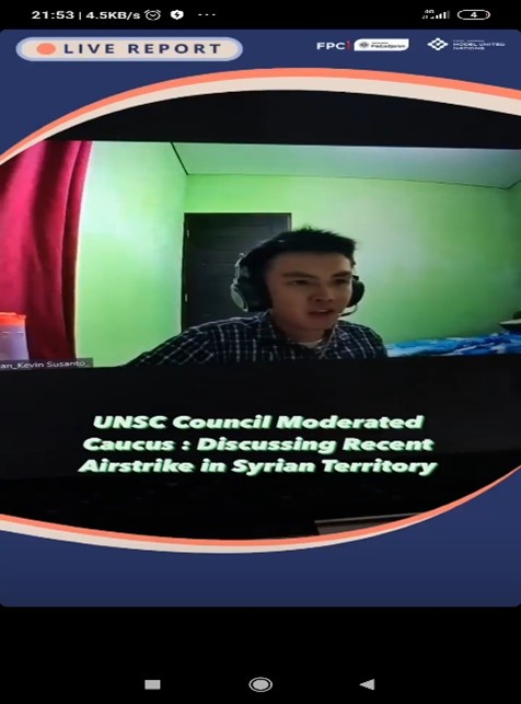 I, Kevin Susanto, was the sole representative of BINUS University. I attended the Security Council. The discussion focused on the Golan Heights and the possibility of a new war. Thus, the council was a hybrid of real-life events and fictional case studies.
