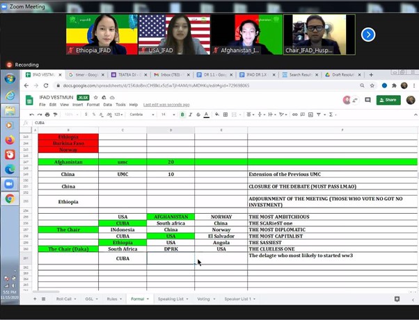 There are 108 delegates registered for VESTMUN 2020 regardless of the inconvenience circumstance of the pandemic itself, with the grand theme of “Combating Global Instability”, this year VESTMUN divided into four councils. All of the four council has its own theme which resonate with the grand theme; ITU (International Telecommunication Union) with the sub-theme “Preventing Misuse of Social Media that Turns to Cybercrime” ; UN WOMEN (United Nations Entity for Gender Equality and the Empowerment of Women) with the sub-theme “Implementing a Post-Pandemic Global Economy Strategy for the Empowerment of Women” ; UNICEF (United Nations International Children’s Emergency Fund) with the sub-theme “Addressing Educational Gaps and Technology Disparities” ; IFAD (International Fund for Agricultural Development) with the sub-theme “Improving Poor Countries by Assisting Agricultural Development.
