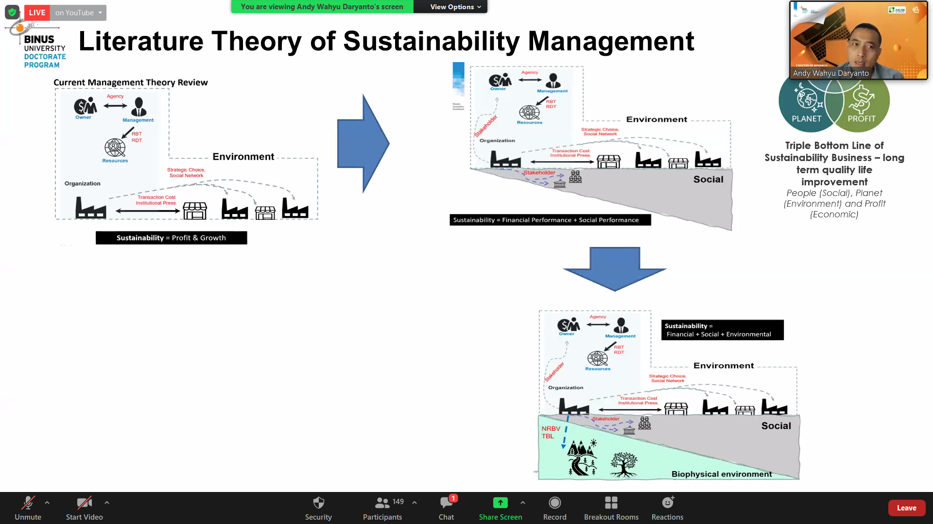 Sementara itu sesi kedua oleh Bapak Andy Wahyu mendiskusikan mengenai gambaran terkait global supply srategic pada saat pandemi dan kontribusi pfzer secara global terhadap SDG school. Pfzer memfokuskan pada program good health and well being dan innovative and infrastructure. Jika dilihat, point pertama sustainability adalah profit and growth, berdiri seolah-olah ideoenden. Kedua, adanya keterkaitan dengan sosial yaitu financial performance dan social performance. Ketiga, keterkaitan dengan biophsycal environment. Terakhir, Proses bisnis dan lingkungan merupakan proses ekosistem, proses timbal balik saling keterkaitan dan ketergantungan.