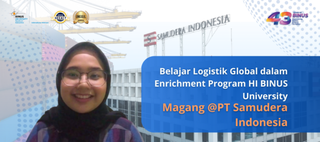 Sarah Alika, mahasiswi Hubungan Internasional BINUS University, menjalani magang di PT. Samudera Indonesia melalui Enrichment Program. Perusahaan global berbasis di Jakarta ini bergerak di bidang logistik, pelayaran, dan kepelabuhan, memberi Sarah kesempatan langsung merasakan dunia kerja dan menerapkan ilmu dari bangku kuliah.
