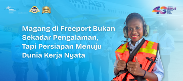 Perluas pengalaman profesional dengan enrichment program Binus University, untuk merombak skill di dunia nyata melalui berbagai track, salah satu nya Internship. Pengalaman nyata salah satu mahasiswa yaitu Maria Martina Magai magang di PT. Freeport Indonesia, sebagai Government Relations, Maria bertanggung jawab langsung dalam membina hubungan dengan pemerintah dan pemangku kepentingan lainnya. Seperti memahami isu-isu kompleks terkait perizinan, regulasi industri tambang, serta dinamika hubungan antara perusahaan dan pemerintah daerah maupun pusat. Selain itu, menghadapi koordinasi lintas pihak, terutama saat terlibat dalam kegiatan yang melibatkan pejabat pemerintah dan tokoh masyarakat, seperti saat membantu pelaksanaan acara buka puasa bersama dengan pemerintah Kabupaten Mimika. Tugas ini menuntut ketelitian dalam pengelolaan acara, mulai dari undangan hingga dokumentasi dan pelaporan. Dari peran yang dijalani selama magang, Maria dapat menyesuaikan diri dengan budaya lokal di Timika, yang membutuhkan kepekaan sosial dan pemahaman budaya dalam berinteraksi dengan masyarakat sekitar. Pengalaman tersebut sangat berharga dalam mengasah keterampilan komunikasi, diplomasi, serta kemampuan manajerial dalam konteks hubungan pemerintahan.