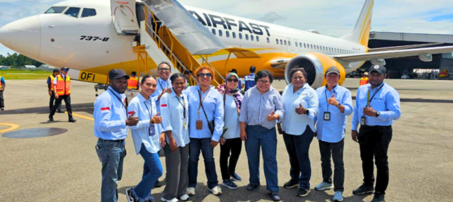 Maria bersama tim Government Relations PT. Freeport Indonesia sedang mengantar tamu VIP di Bandara Mozes Kilangin, Timika, sebagai bagian dari pengelolaan akomodasi dan rangkaian kegiatan HUT PTFI.