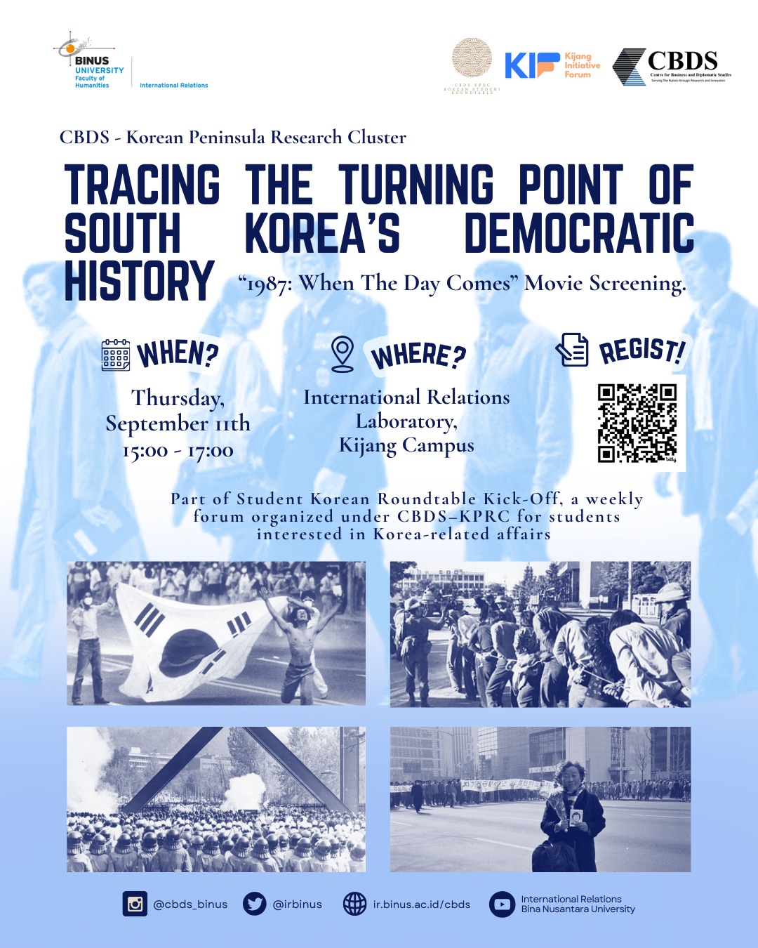 - Academic Forum: Screening & Discussion on South Korea’s Democratization (1987 – When The Day Comes); 11/09/2025